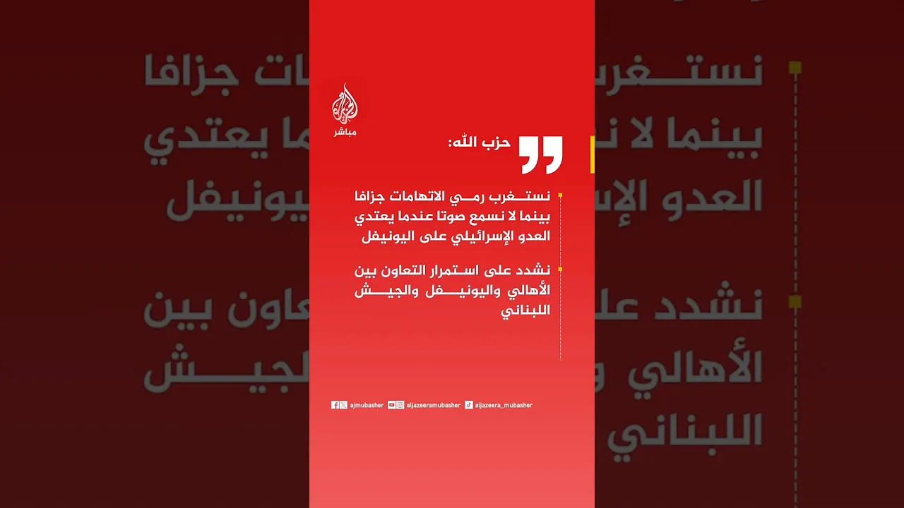 عاجل | حزب الله: نشدد على استمرار التعاون بين الأهالي واليونيفل والجيش اللبناني