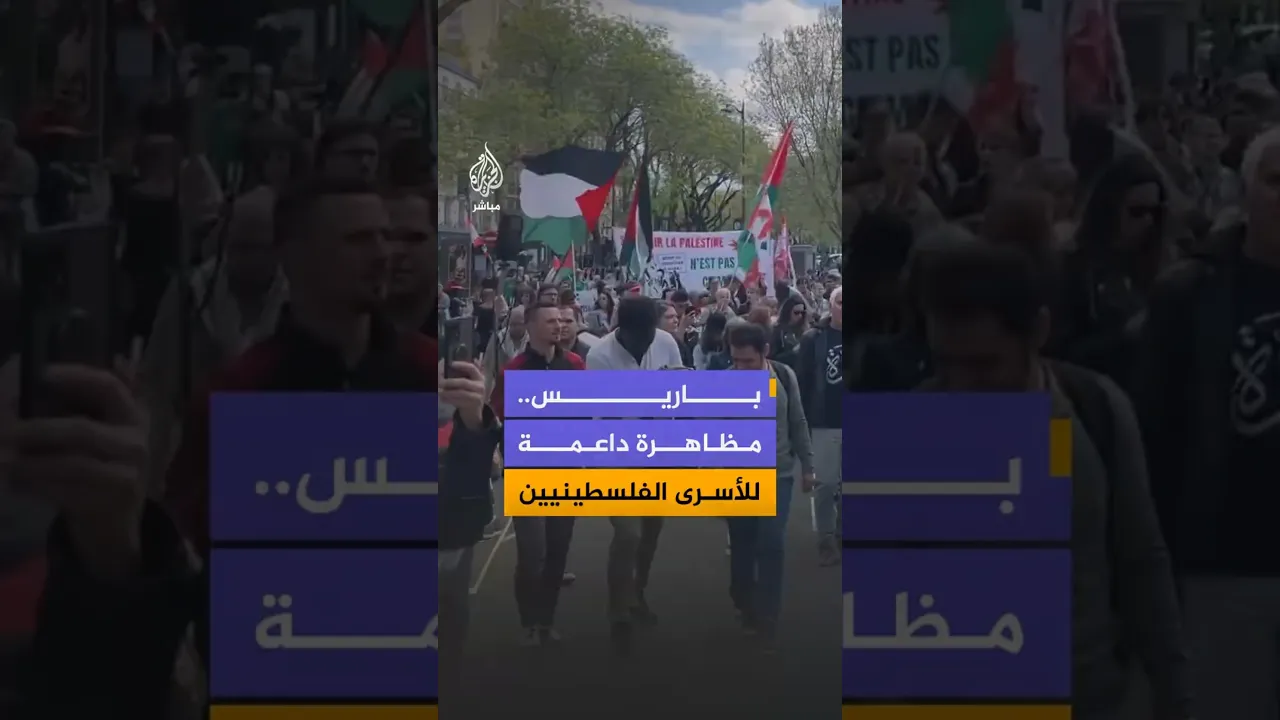 في يوم الأسير الفلسطيني.. مظاهرة في العاصمة الفرنسية #باريس تطالب بالإفراج عن الأسرى الفلسطينيين من سجون الاحتلال
