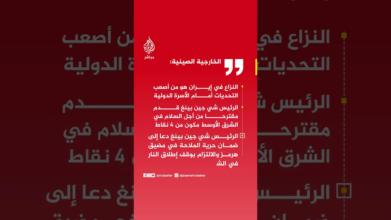 عاجل | الخارجية الصينية بشأن اعتراض الولايات المتحدة لسفينة إيرانية: نعارض هذا الأمر الذي قد يزيد من حدة التوتر في المنطقة ونأمل أن تحافظ الأطراف المعنية على زخم محادثات وقف إطلاق النار