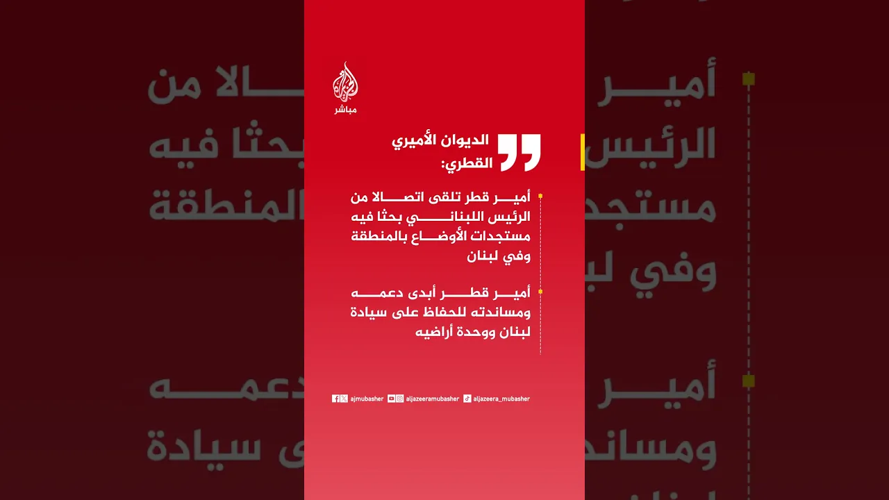 الديوان الأميري القطري: أمير قطر أبدى دعمه ومساندته للحفاظ على سيادة لبنان ووحدة أراضيه