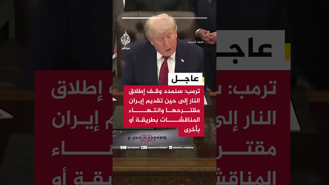 🟥 سنمدد وقف إطلاق النار إلى حين تقديم إيران مقترحها وانتهاء المناقشات بطريقة أو بأخرى