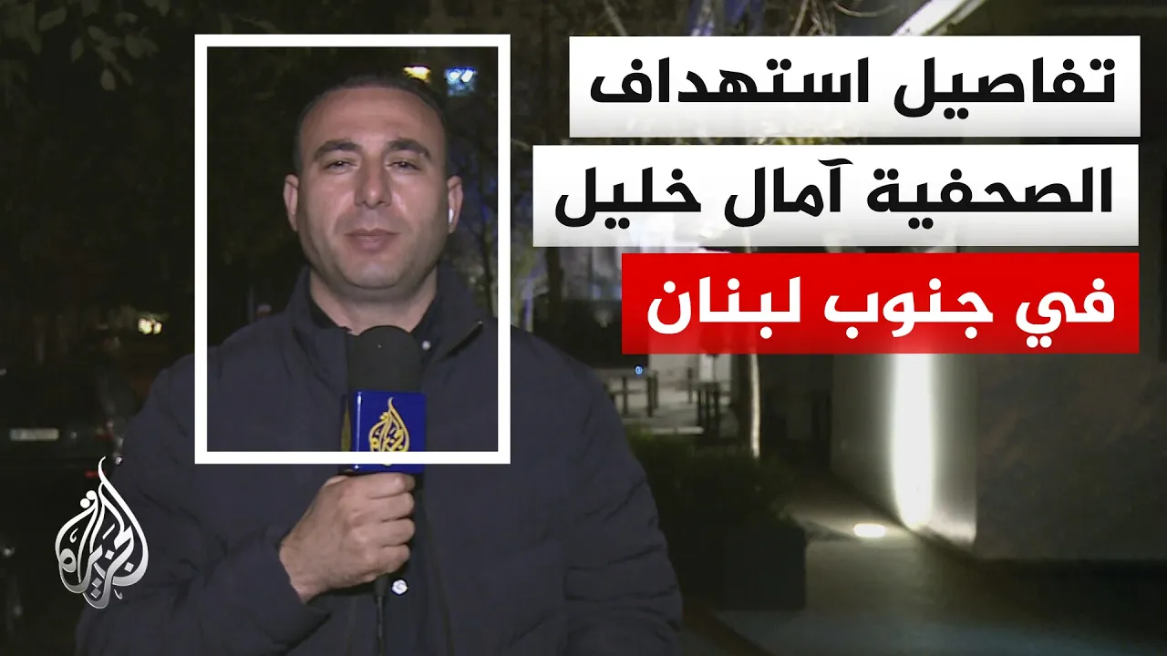وقال الدفاع المدني اللبناني -في بيان- إن "فرق البحث والإنقاذ تمكنت من انتشال جثمان الشهيدة الصحفية آمال خليل، التي استشهدت جرّاء غارة إسرائيلية استهدفت منزلا في بلدة الطيري".
