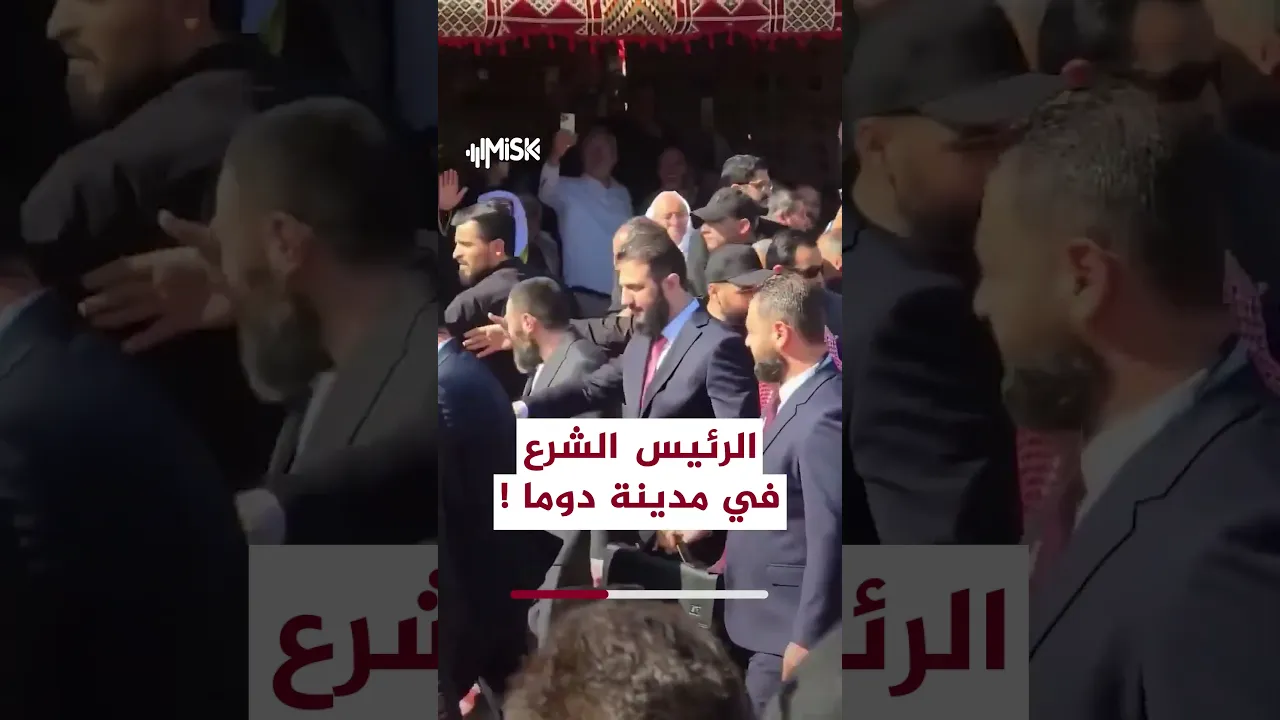 الرئيس الشرع برفقة عصام البويضاني لحظة وصولهم إلى مدينة دوما.