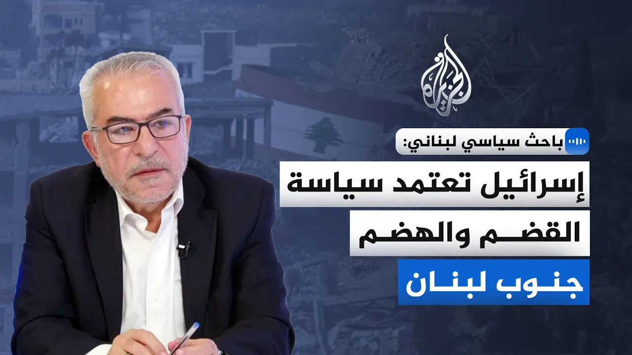 "إسرائيل تعتمد سياسة القضم والهضم جنوب لبنان".. قال الكاتب والباحث في العلوم السياسية اللبناني، أكرم بزي، في مقابلة مع الجزيرة، إن الاحتلال يمارس عقيدة "القضم والهضم" لتدمير مقومات الحياة ومنع الأهالي من العودة لبيوتهم مستقبلا
