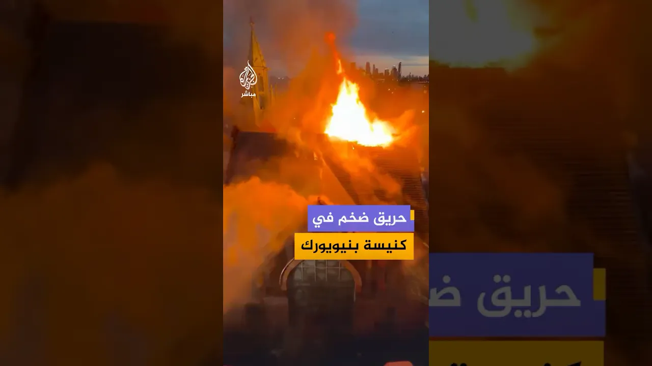 اندلاع حريق ضخم داخل كنيسة في حي أستوريا بمنطقة كوينز في ولاية نيويورك فيما لا يعرف أسباب اندلاعه حتى الآن