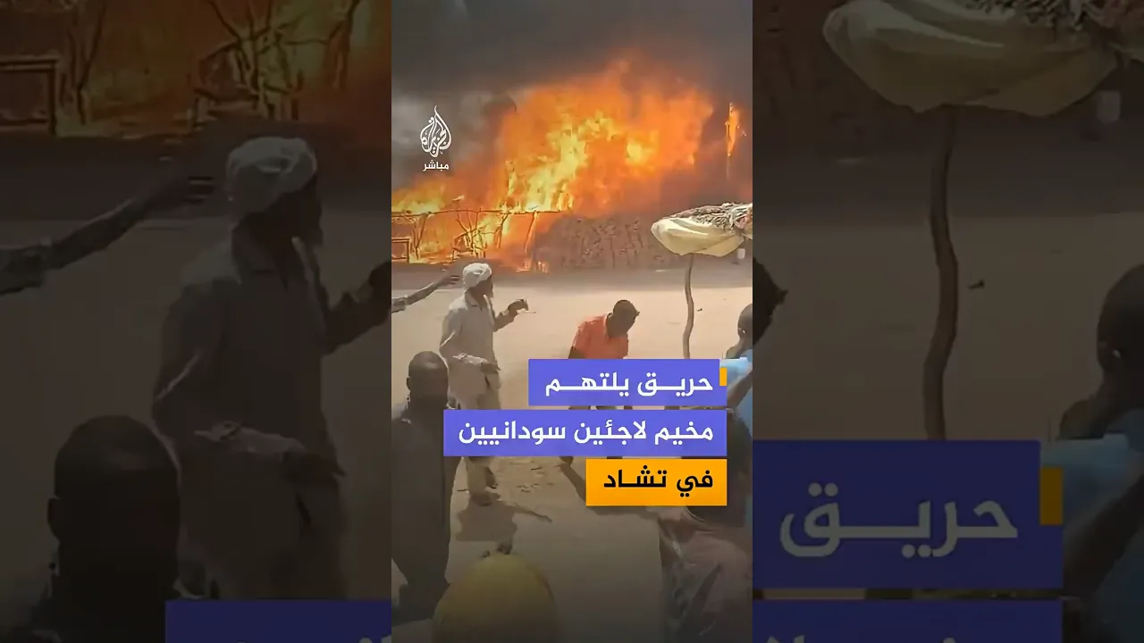 لحظة اندلاع حريق في معسكر "علاشه" للاجئين السودانيين شرقي تشاد ودمار عشرات المساكن المؤقتة
