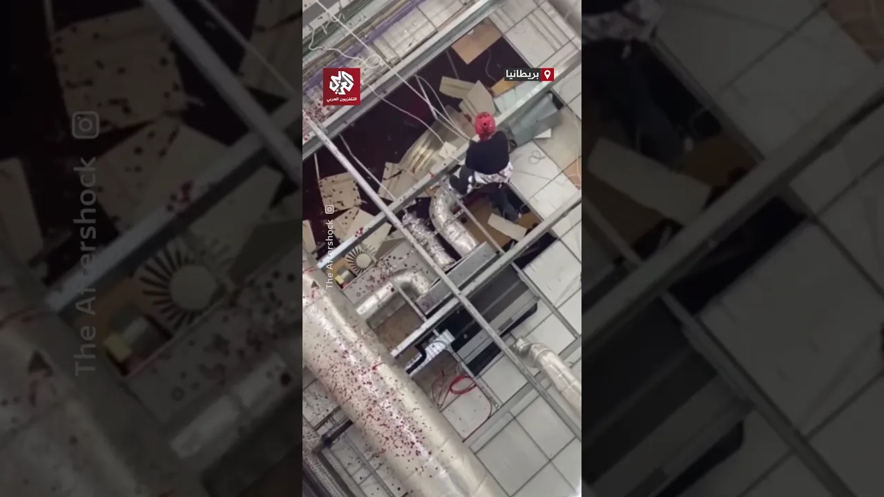 لحظة اقتحام نشطاء عبر السقف  مصنع طائرات مسيّرة يتبع "إلبيت سيستمز" الإسرائيلية في ليستر ببريطانيا