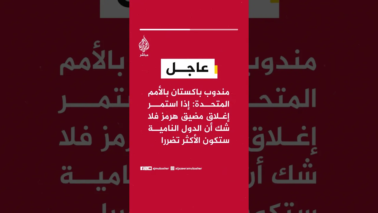 مندوب #باكستان بالأمم المتحدة: إذا استمر إغلاق #مضيق_هرمز فلا شك أن الدول النامية ستكون الأكثر تضررا