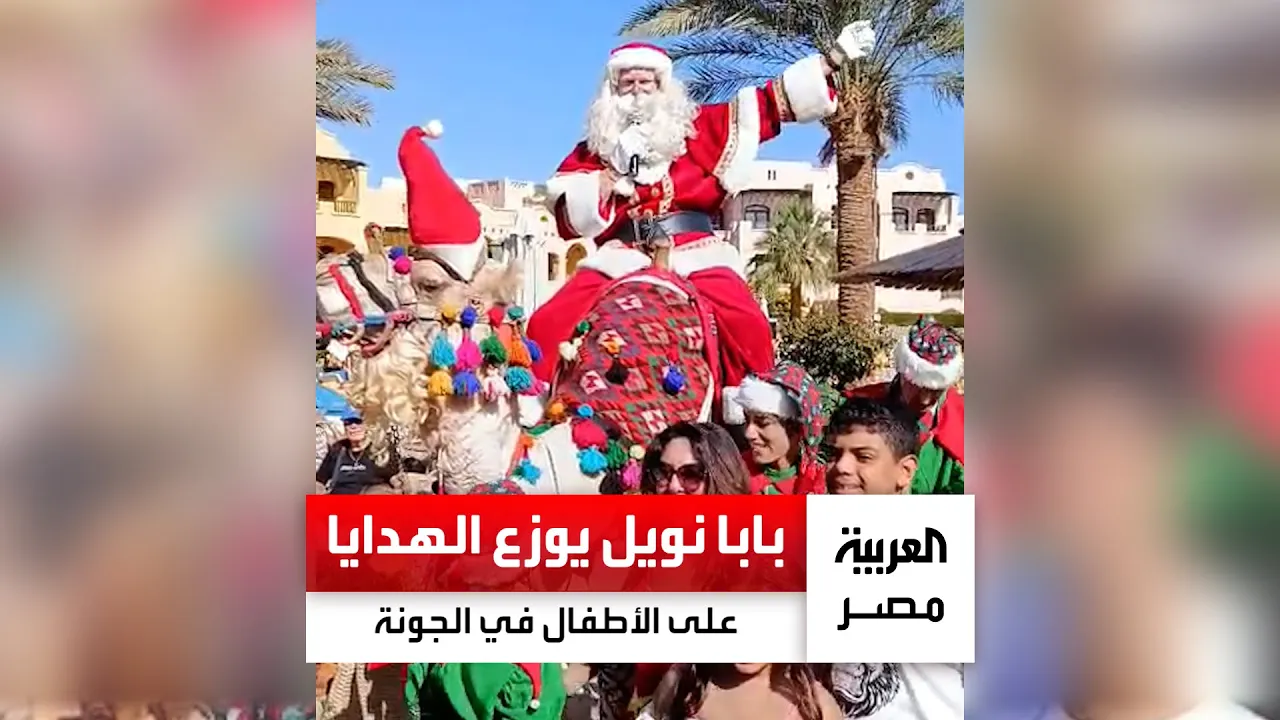 بابا نويل يصل الجونة على ظهر "جمل" ويوزع الهدايا على الأطفال النزلاء