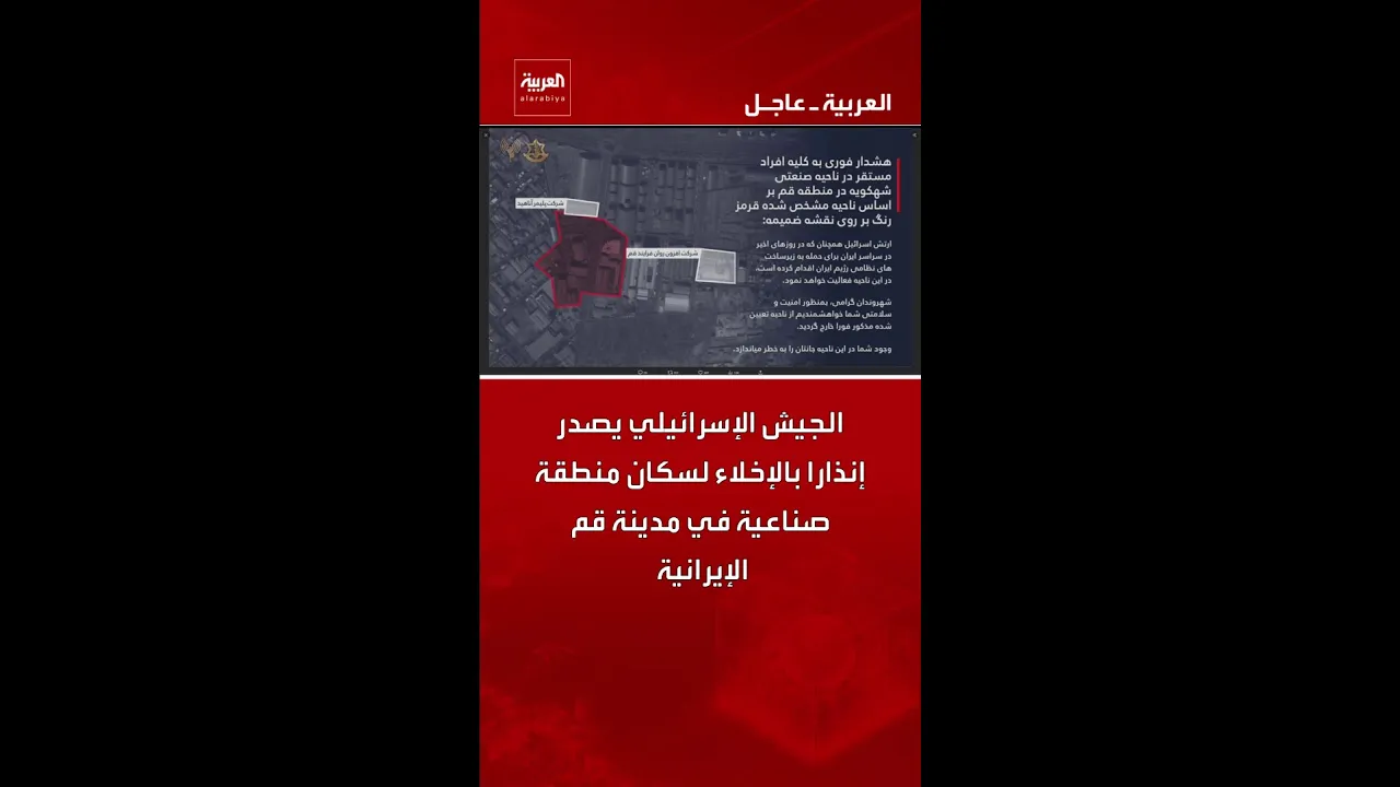 الجيش الإسرائيلي يصدر إنذارا بالإخلاء لسكان منطقة صناعية في مدينة قم الإيرانية