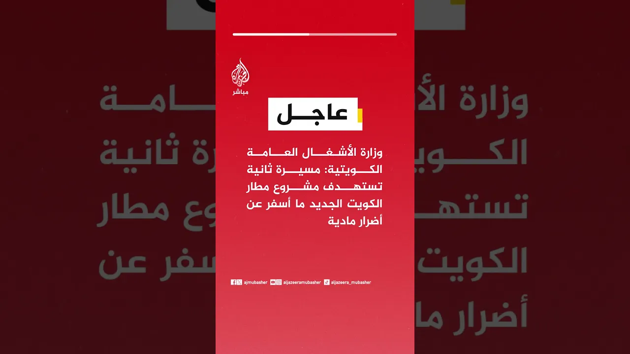 عاجل | وزارة الأشغال العامة الكويتية: مسيرة ثانية تستهدف مشروع مطار الكويت الجديد ما أسفر عن أضرار مادية دون إصابات