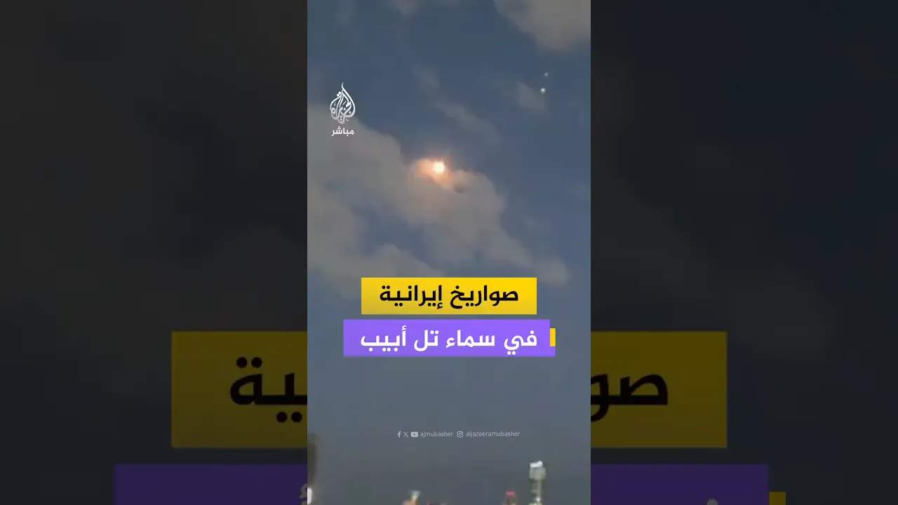 لحظة إضاءة سماء مدينة تل أبيب بالانفجارات إثر محاولات الدفاعات الجوية الإسرائيلية اعتراض صواريخ