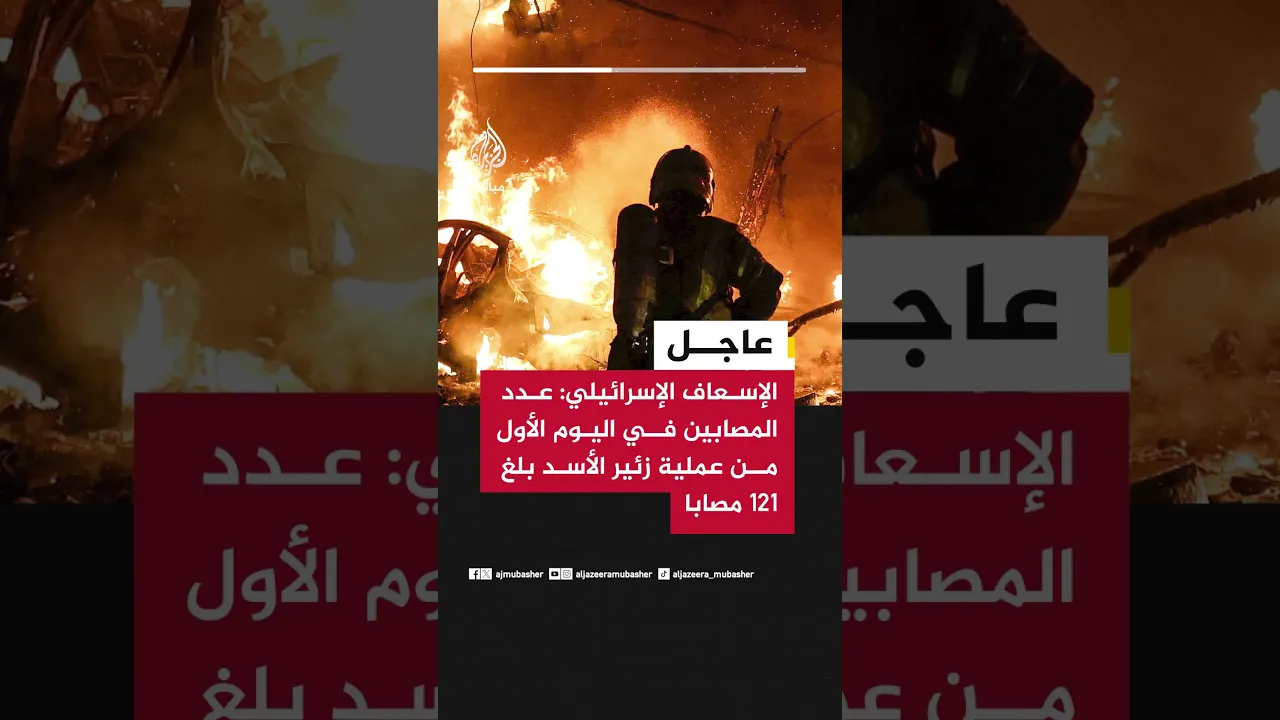 عاجل | الإسعاف الإسرائيلي: عدد المصابين في اليوم الأول من عملية زئير الأسد بلغ 121 مصابا