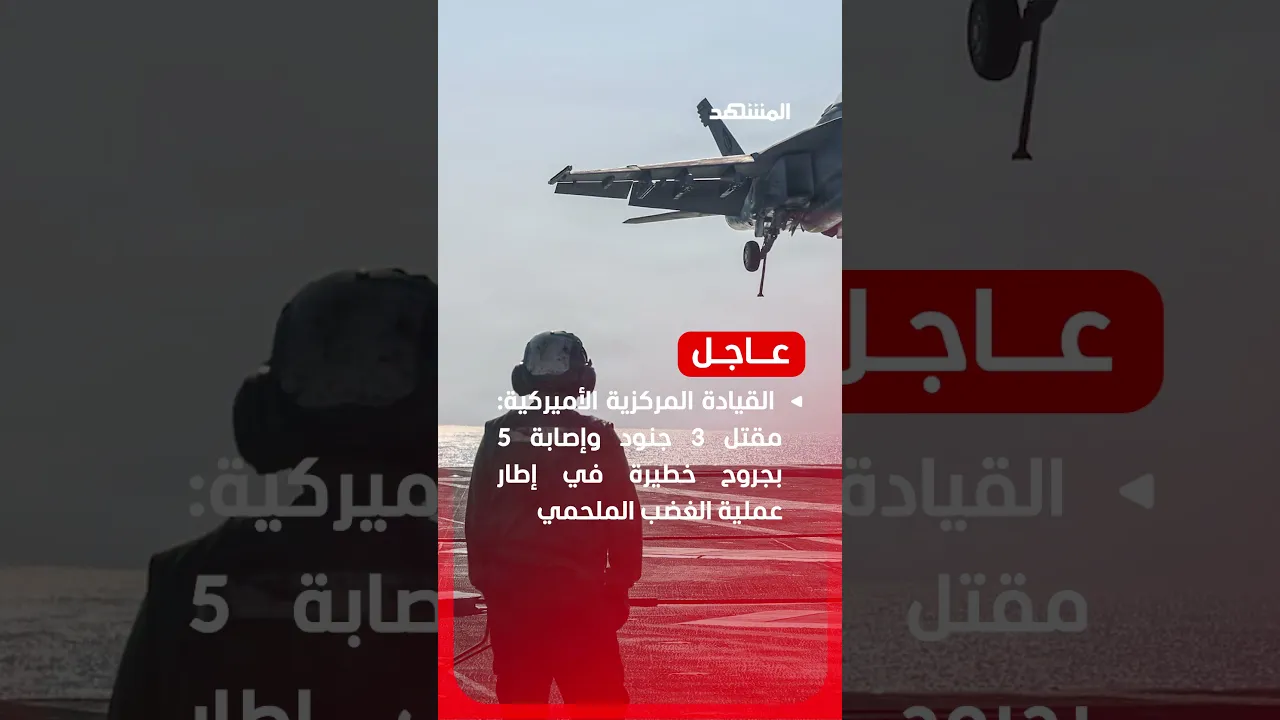 #عاجل |  القيادة المركزية الأميركية: مقتل 3 جنود وإصابة 5 بجروح خطيرة في إطار عملية الغضب الملحمي