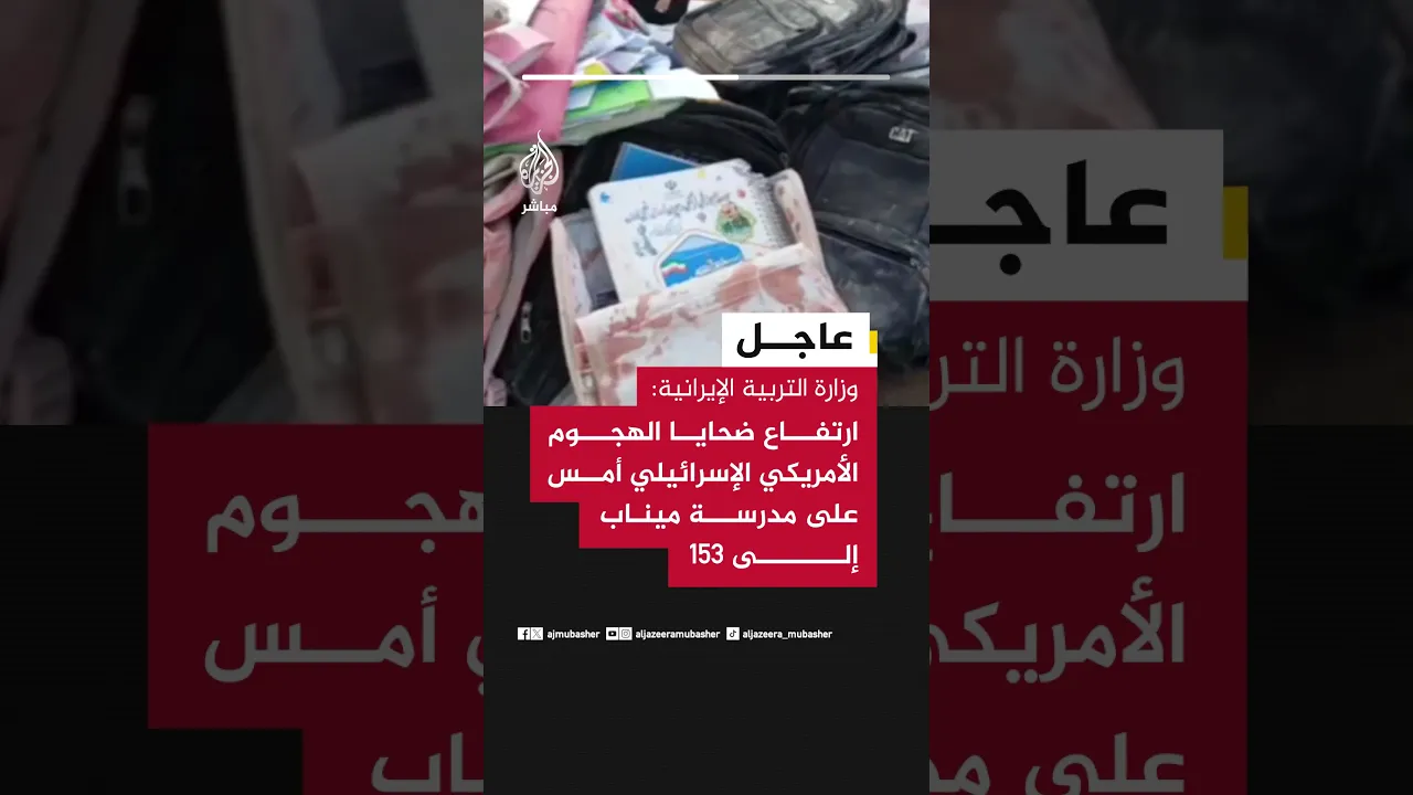 عاجل | وزارة التربية الإيرانية: ارتفاع ضحايا الهجوم الأمريكي الإسرائيلي أمس على مدرسة ميناب إلى 153
