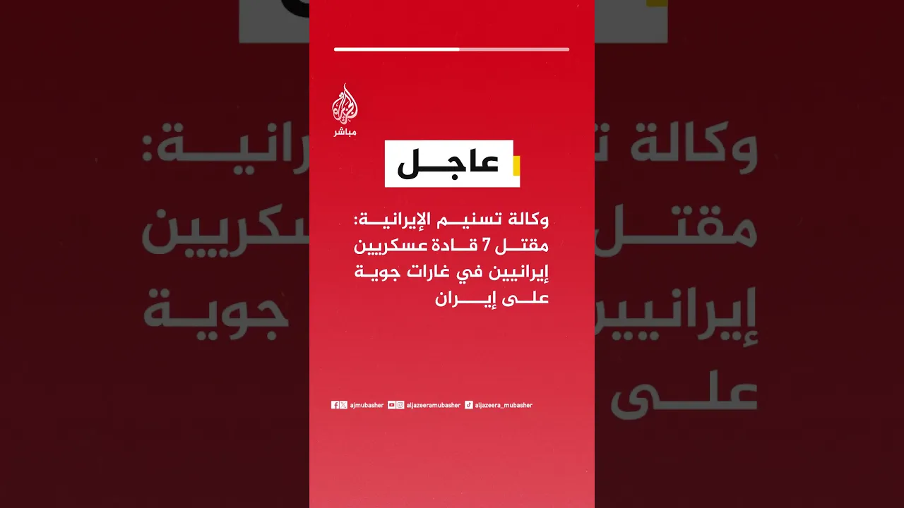 عاجل | وكالة تسنيم الإيرانية: مقتل 7 قادة عسكريين إيرانيين في غارات جوية على #إيران