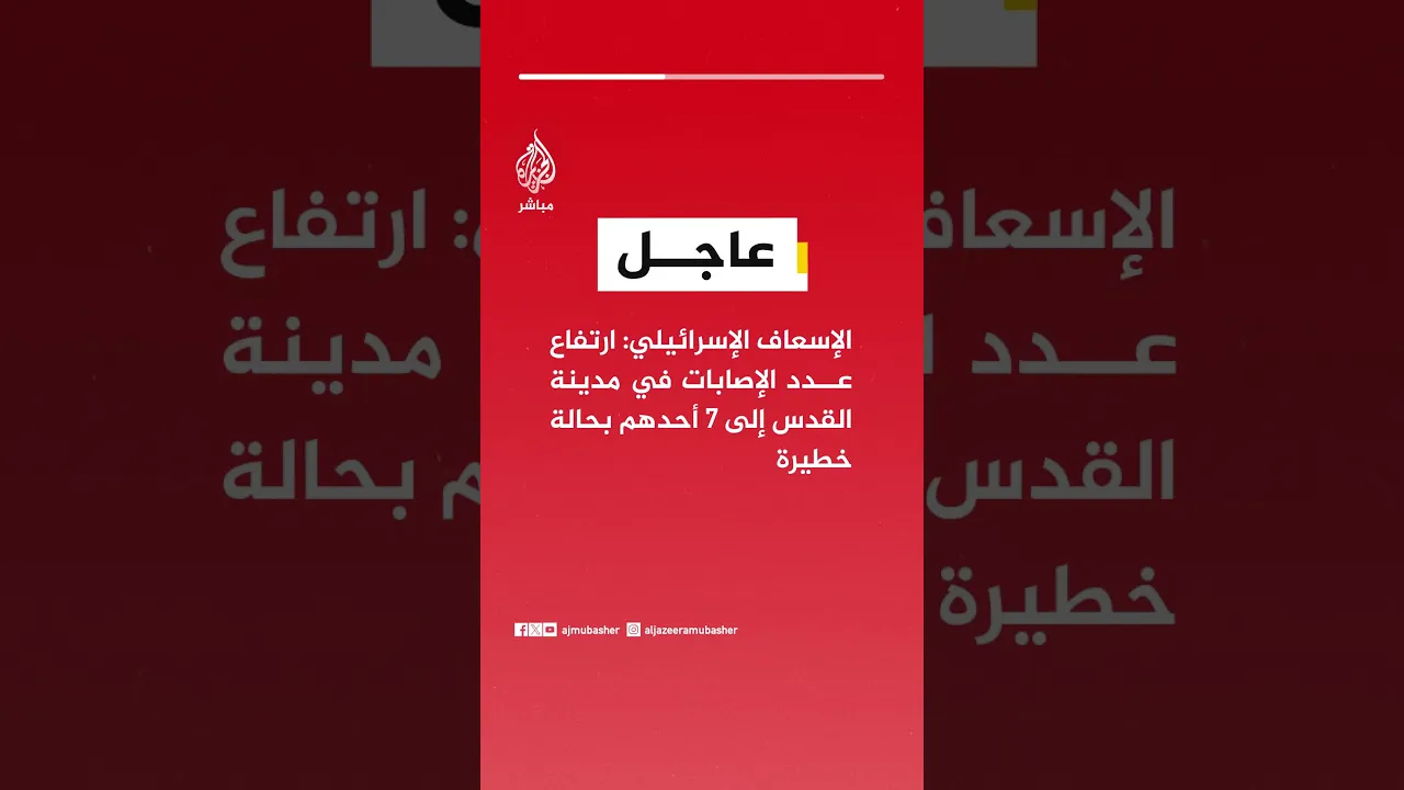 #عاجل| الإسعاف الإسرائيلي: ارتفاع عدد الإصابات في مدينة #القدس إلى 7 أحدهم بحالة خطيرة