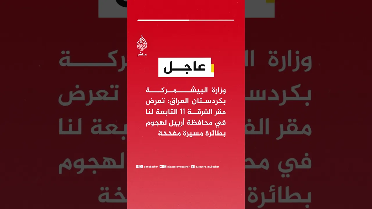 عاجل | وزارة البيشمركة بـ #كردستان العراق: تعرض مقر الفرقة 11 التابعة لنا في محافظة أربيل لهجوم بطائرة مسيرة مفخخة
