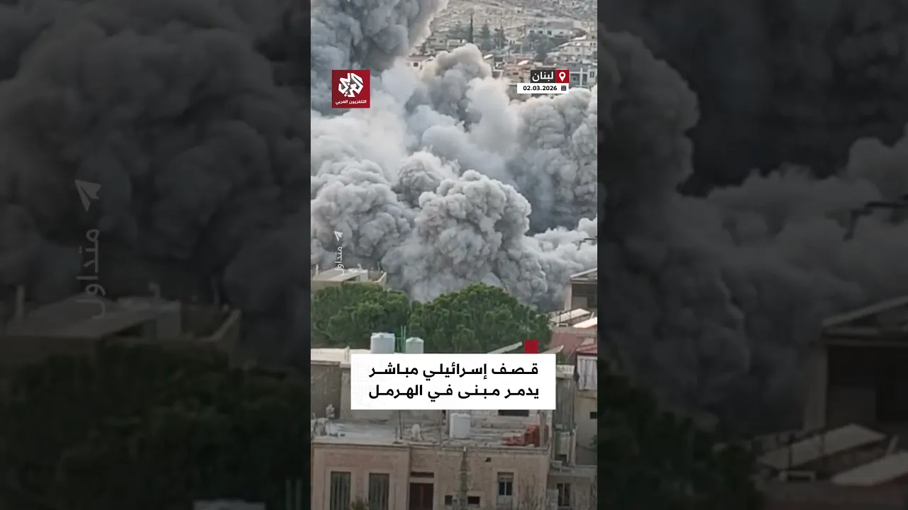 لحظة استهداف إسرائيلي لمبنى في الهرمل بعلبك بمحافظة البقاع شمال شرق لبنان