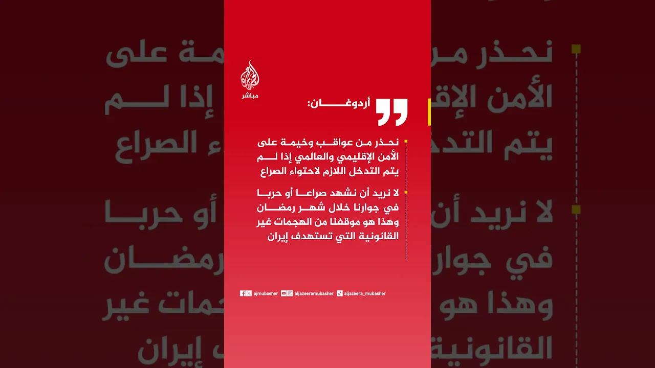 الرئيس التركي رجب طيب #أردوغان: نحذر من عواقب وخيمة على الأمن الإقليمي والعالمي إذا لم يتم التدخل اللازم لاحتواء الصراع