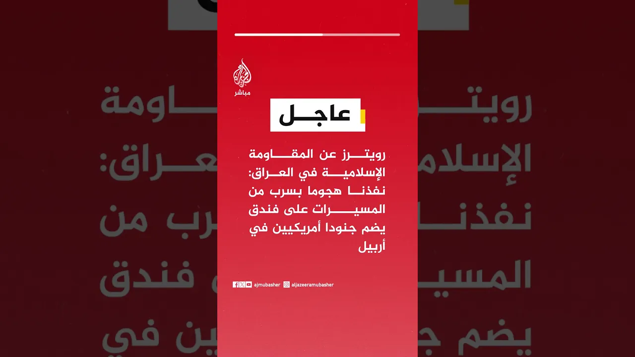 عاجل | رويترز عن المقاومة الإسلامية في #العراق: نفذنا هجوما بسرب من  المسيرات على فندق يضم جنودا أمريكيين في أربيل