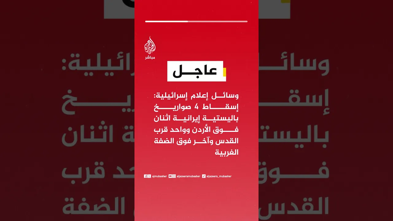 وسائل إعلام إسرائيلية: إسقاط 4 صواريخ باليستية إيرانية اثنان فوق الأردن وواحد قرب القدس وآخر..