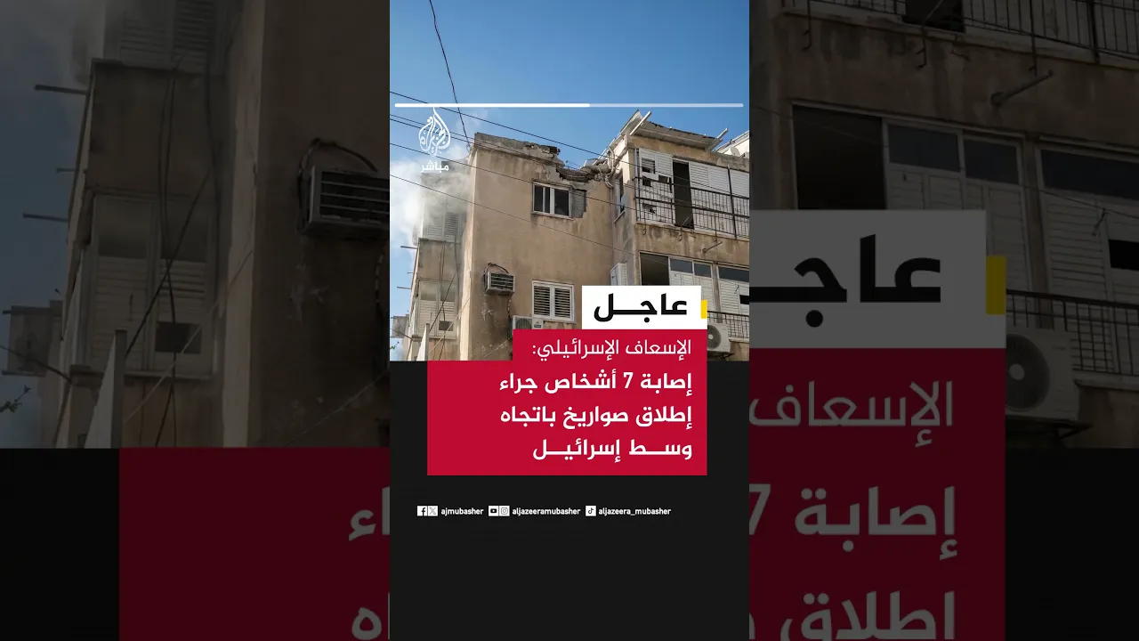 الإسعاف الإسرائيلي: إصـ ـابة 7 أشخاص جراء إطلاق صـ ـواريخ باتجاه وسط #إسرائيل
