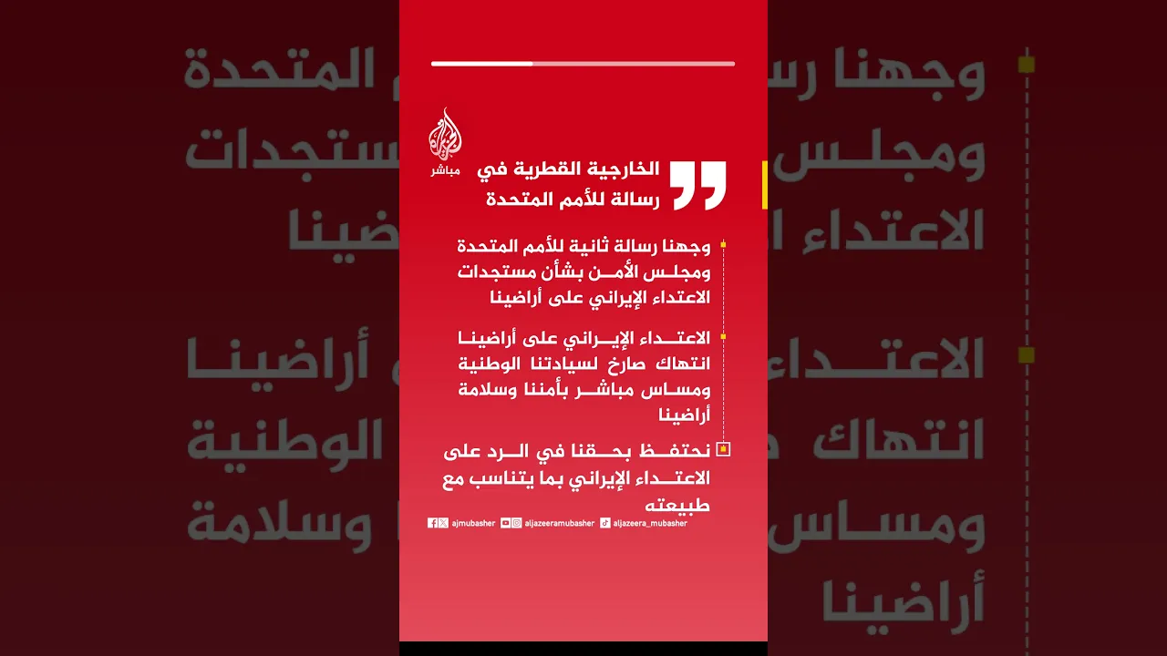 عاجل | الخارجية القطرية في رسالة للأمم المتحدة: وجهنا رسالة ثانية للأمم المتحدة ومجلس الأمن بشأن مستجدات الاعتداء الإيراني على أراضينا