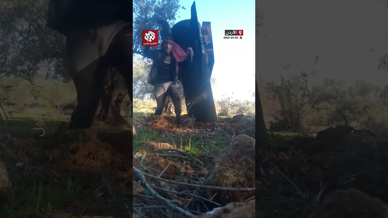 رقصة عفوية بجانب حطام صاروخ.. أردني يحتفل على طريقته بإسقاط صاروخ إيراني في مزرعته