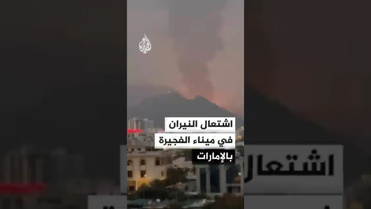 اشتعال النيران في ميناء الفجيرة بالإمارات إثر سقوط شظايا اعتراض صواريخ تسببت في اندلاع حريق