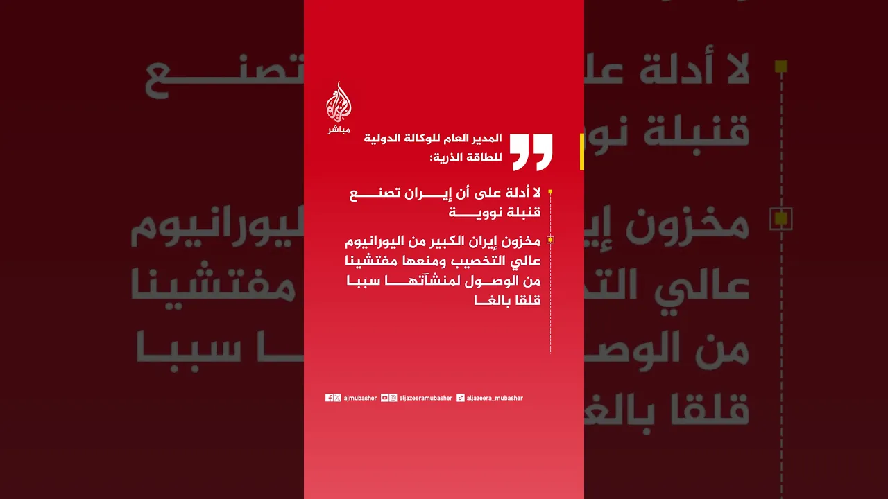 عاجل | المدير العام للوكالة الدولية للطاقة الذرية: لا أدلة على أن #إيران تصنع قنبلة نووية