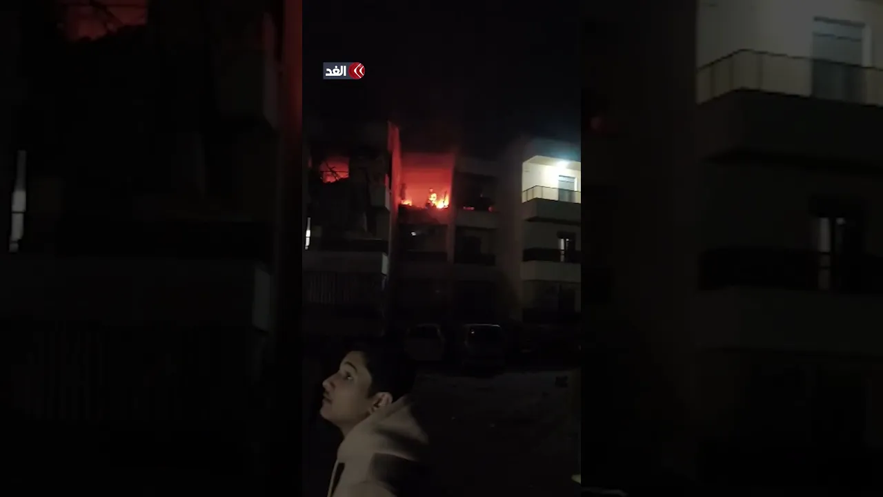 المشاهد الأولى من موقع الغارة الإسرائيلية التي استهدفت شقة سكنية في منطقة عرمون جنوبي بيروت وأسفرت عن ارتقاء شهيد وسقوط أكثر من 20 مصابا حسب مراسلة الغد
