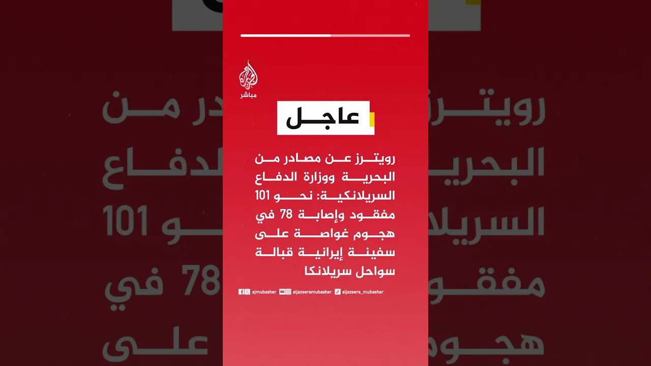 رويترز عن مصادر من البحرية ووزارة الدفاع السريلانكية: نحو 101 مفقود وإصابة 78 في هجوم غواصة..