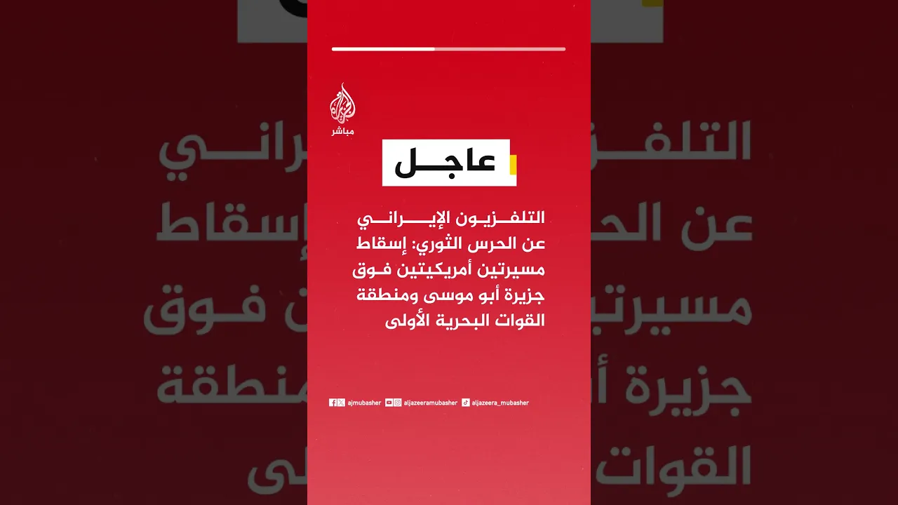 عاجل | التلفزيون الإيراني عن الحرس الثوري: إسقاط مسيرتين أمريكيتين فوق جزيرة أبو موسى ومنطقة القوات البحرية الأولى