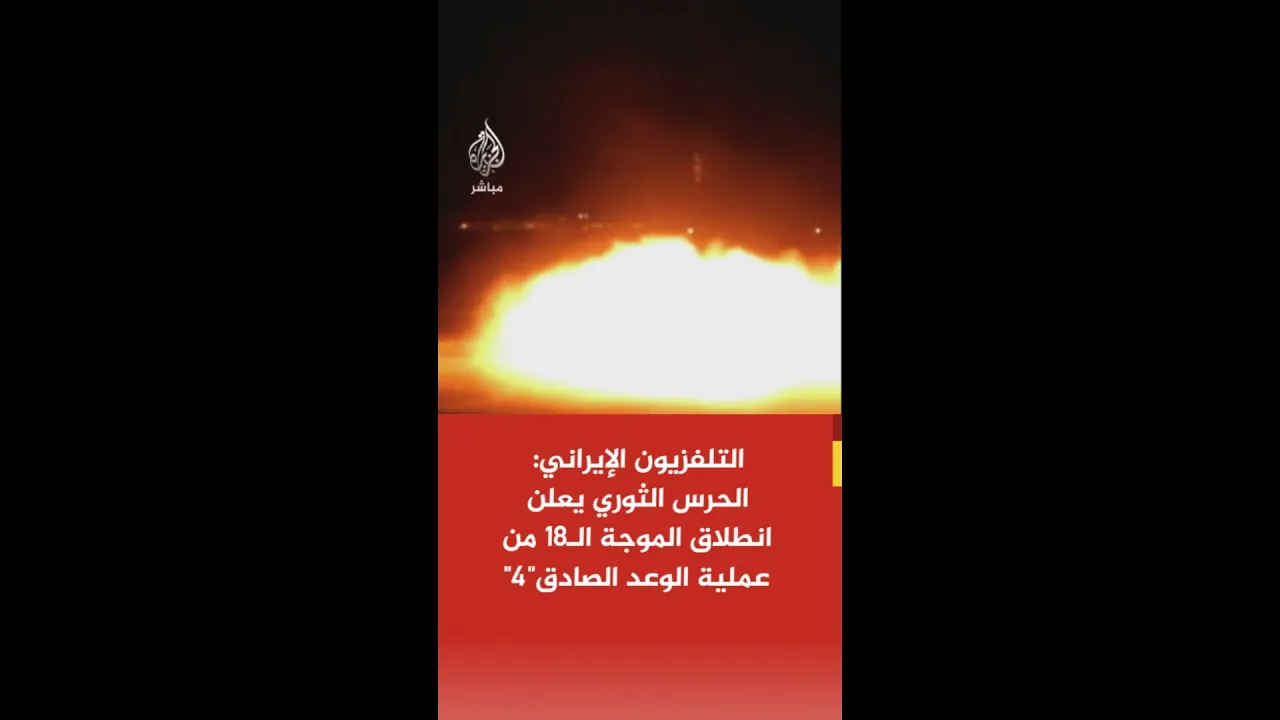 عاجل | التلفزيون الإيراني: الحرس الثوري يعلن انطلاق الموجة الـ18 من عملية الوعد الصادق"4"