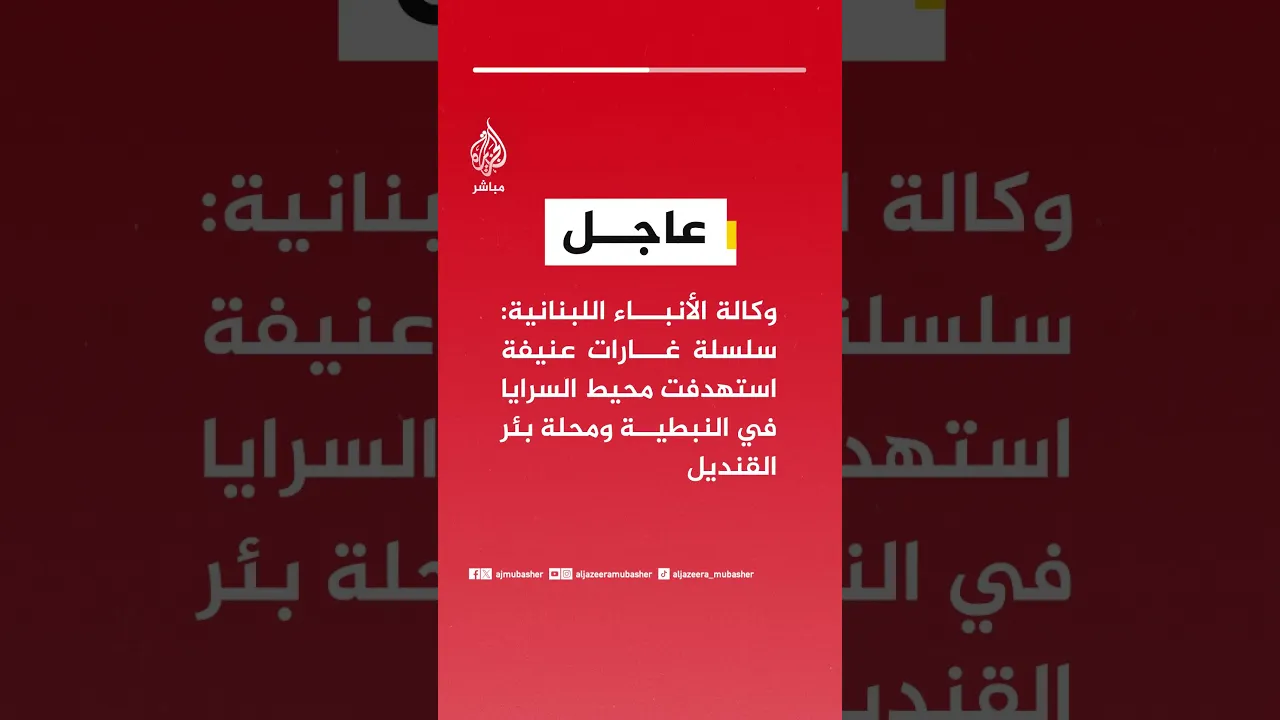 عاجل | وكالة الأنباء اللبنانية: سلسلة غارات عنيفة استهدفت محيط السرايا في النبطية ومحلة بئر القنديل