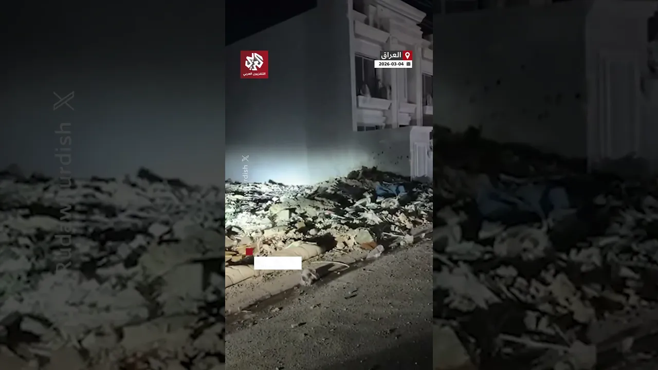 مشاهد من موقع سقوط شظايا مسيرة في مدينة أربيل بكردستان العراق