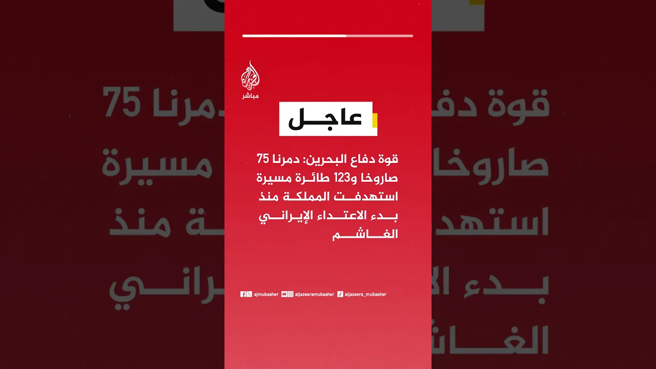 عاجل | قوة دفاع #البحرين: دمرنا 75 صاروخا و123 طائرة مسيّرة استهدفت المملكة منذ بدء الاعتداء الإيراني الغاشم