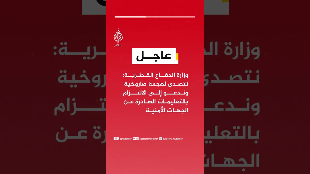 #عاجل | وزارة الدفاع القطرية: نتصدى لهجمة صاروخية وندعو إلى الالتزام بالتعليمات الصادرة عن الجهات الأمنية