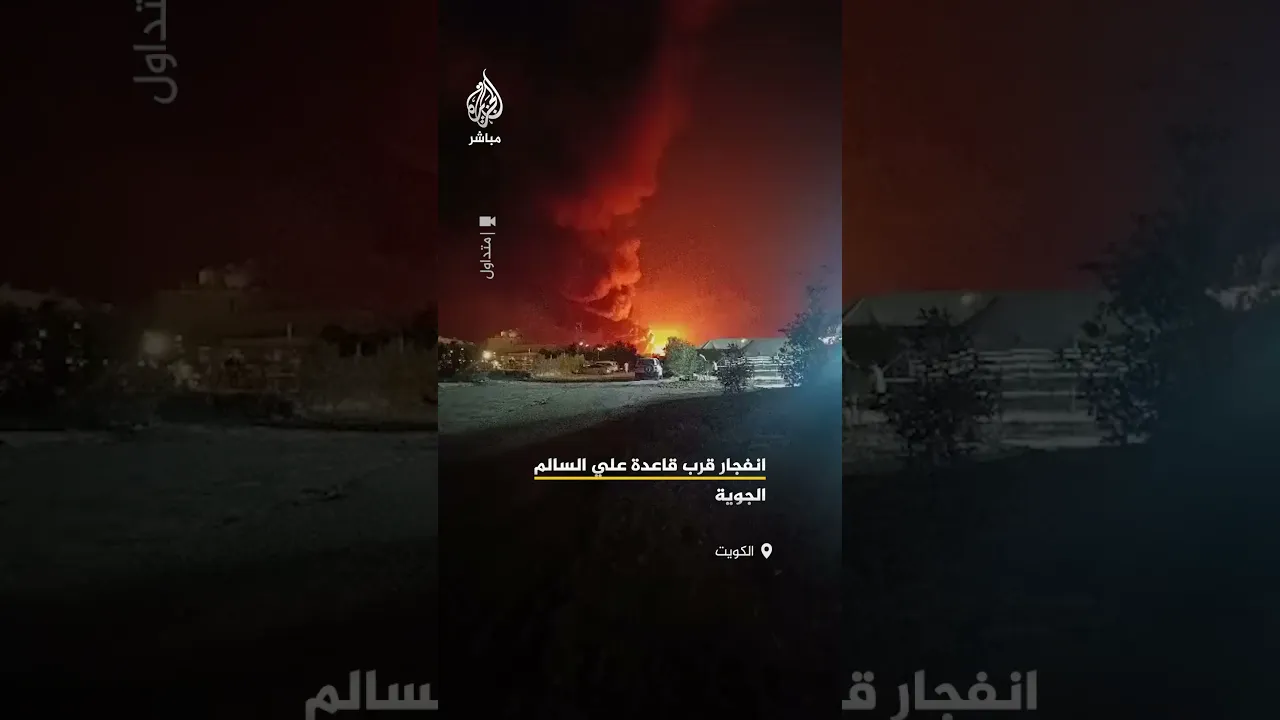 انفجار وتصاعد ألسنة اللهب قرب قاعدة علي السالم الجوية جنوب #الكويت