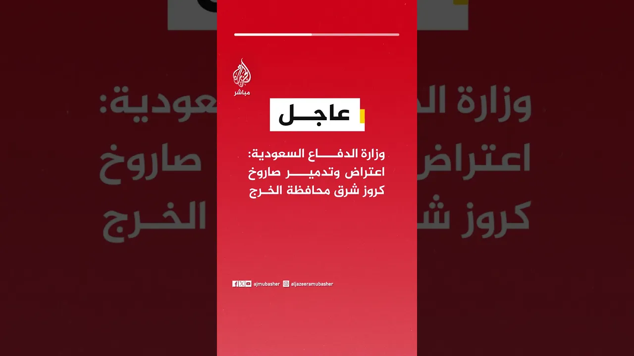 عاجل | وزارة الدفاع #السعودية: اعتراض وتدمير صاروخ كروز شرق محافظة الخرج