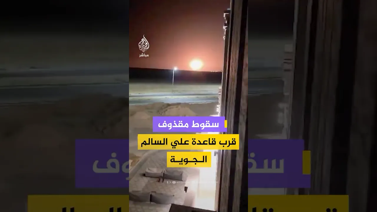 مقطع متداول يظهر لحظة سقوط مقذوف قرب قاعدة علي السالم الجوية جنوبي #الكويت