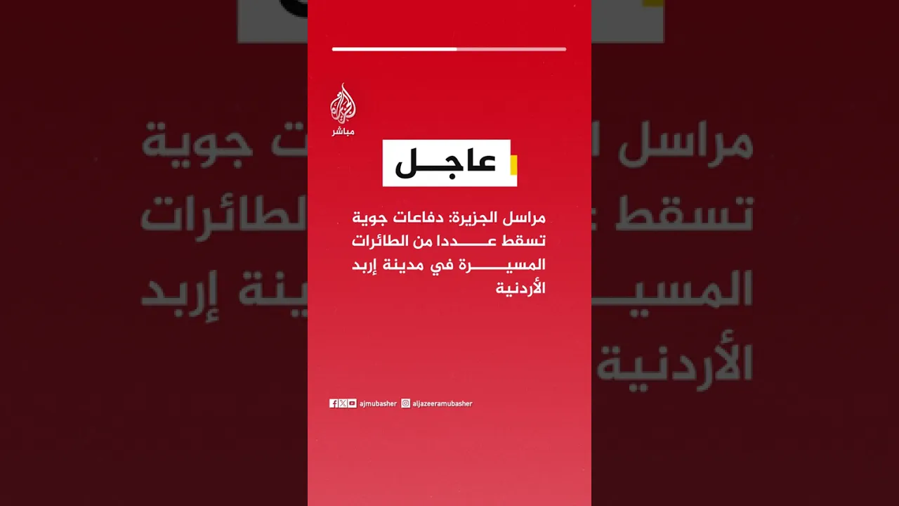 عاجل | مراسل الجزيرة: دفاعات جوية تسقط عددا من الطائرات المسيرة في مدينة #إربد الأردنية