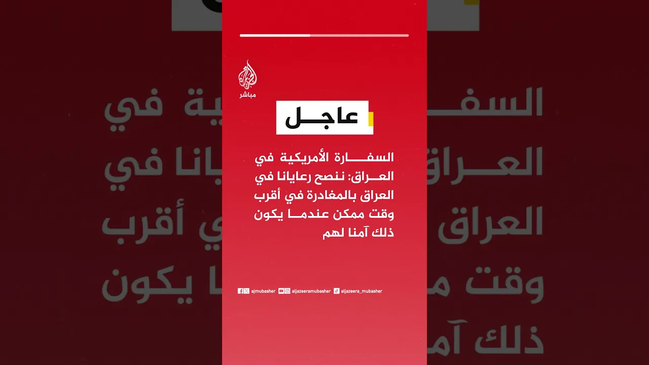 السفارة الأمريكية في العراق ننصح رعايانا في العراق بالمغادرة في أقرب وقت ممكن عندما يكون ذلك