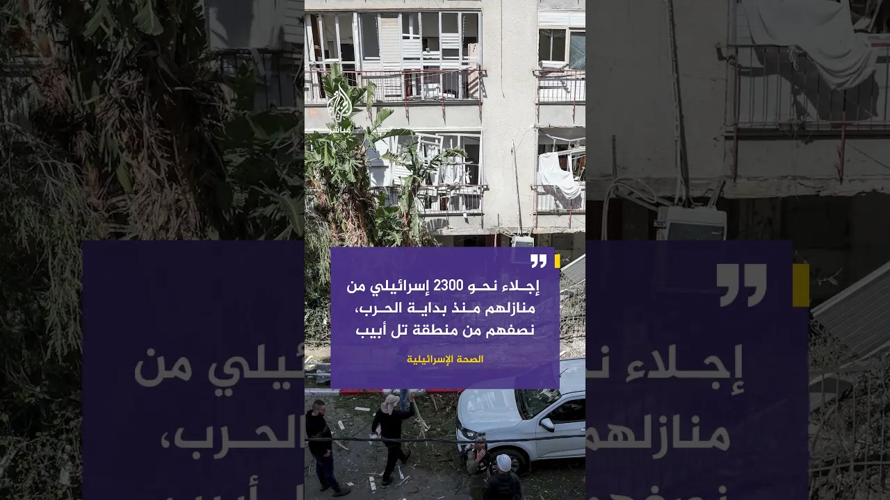 الصحة الإسرائيلية: إجلاء نحو 2300 إسرائيلي من منازلهم منذ بداية الحرب، نصفهم من منطقة تل أبيب