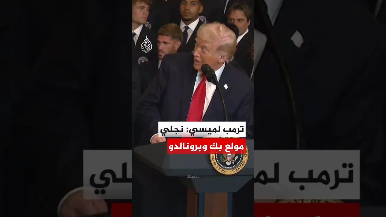الرئيس الأمريكي دونالد ترمب، يقول لنجم كرة القدم الأرجنتيني ليونيل ميسي، إن نجله مولع به وبالنجم البرتغالي كريستيانو رونالدو. وذلك خلال تكريمه لفريق إنتر ميامي في الولايات المتحدة.
