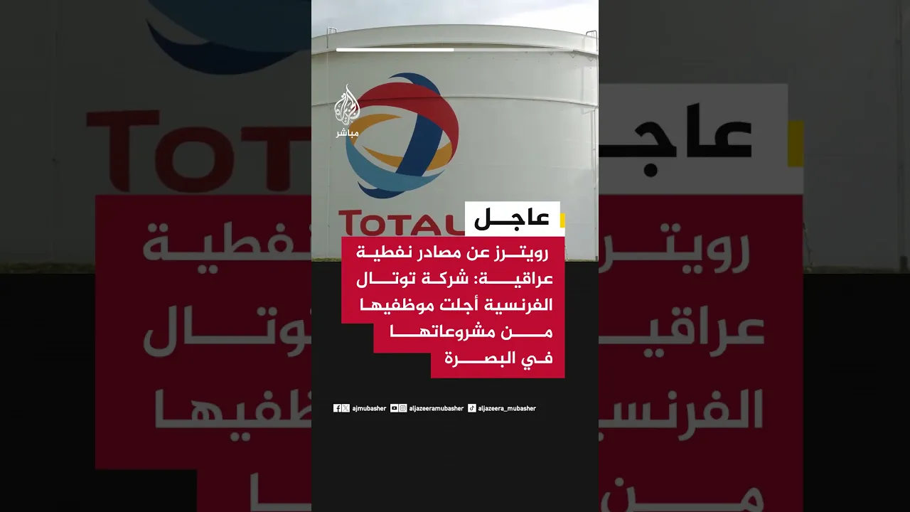 عاجل | رويترز عن مصادر نفطية عراقية: شركة توتال الفرنسية أجلت موظفيها من مشروعاتها في البصرة