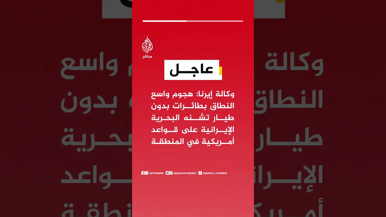 عاجل | وكالة إيرنا: هجوم واسع النطاق بطائرات بدون طيار تشنه البحرية الإيرانية على قواعد أمريكية في المنطقة