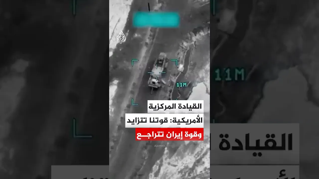 القيادة المركزية الأمريكية تنشر الجمعة، مشاهد من استهداف مناطق في إيران، معلقة عليه "تتزايد القوة القتالية الأمريكية في الوقت الذي تتراجع فيه القوة القتالية الإيرانية".