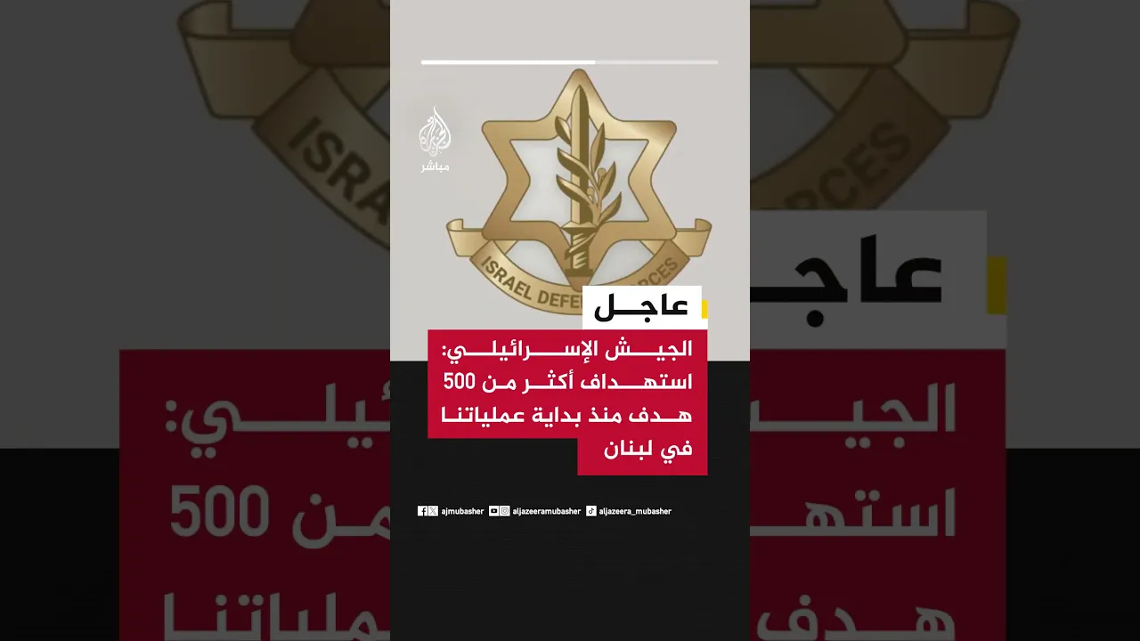 الجيش الإسرائيلي: استهداف أكثر من 500 هدف منذ بداية عملياتنا في لبنان